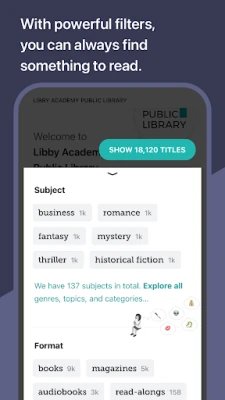 Libby, kütüphanenizin geniş dijital dünyasını parmaklarınızın ucuna getiriyor. Klasiklerden New York Times'ın çok satanlarına kadar uzanan, elektronik kitaplar, sesli kitaplar ve dergilerden oluşan zengin bir koleksiyona zahmetsizce erişim sağlayın. Okumak ve dinlemek istediğiniz içerikleri, cihazınızda yer tasarrufu sağlayarak yayın akışı üzerinden değerlendirebilir veya çevrimdışı keyif için cihazınıza aktarabilirsiniz. Amerika Birleşik Devletleri'ndeki kütüphaneler için favori elektronik kitaplarınızı Kindle'ınıza gönderme ayrıcalığına sahip olun ve Android Auto entegrasyonu sayesinde sesli kitaplarınızı yolculuklarınızda kolayca dinleyin. Okuma zevkinizi etiketlerle kişiselleştirin, kendi "mutlaka okunacaklar" listenizi ve dilediğiniz diğer koleksiyonları oluşturarak dijital kütüphanenizi düzenleyin. Okuma konumunuzun tüm cihazlarınız arasında otomatik olarak senkronize edilmesi sayesinde, kaldığınız yerden sorunsuzca devam edin.